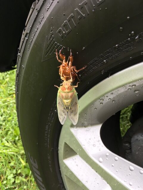 ゲレンデ君の前タイヤで【蝉が羽化していた】こと。